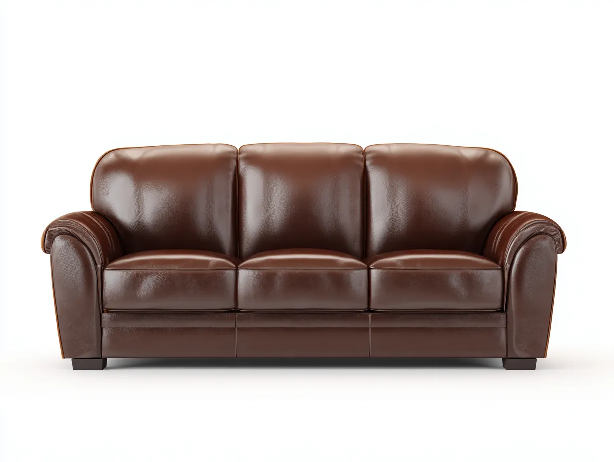 Der Bezug besteht aus Leder in Dunkelbraun und verleiht dem Sofa eine elegante und warme Ausstrahlung. Die Oberfläche besitzt eine glatte Struktur und eine angenehme Haptik. Die stabile Konstruktion sowie die gleichmäßig gepolsterten Sitz- und Rückenflächen unterstützen eine langlebige Nutzung im Wohnbereich.