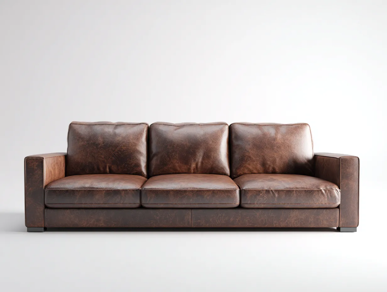Der Bezug besteht aus Leder in Braun und verleiht dem Sofa eine markante Vintage Optik. Die Oberfläche zeigt eine natürliche Struktur, die dem Möbelstück einen charakteristischen Ausdruck verleiht. Die stabile innere Konstruktion sorgt für eine zuverlässige Nutzung im Alltag, während die Polsterung eine ausgewogene Kombination aus Komfort und Stabilität bietet.